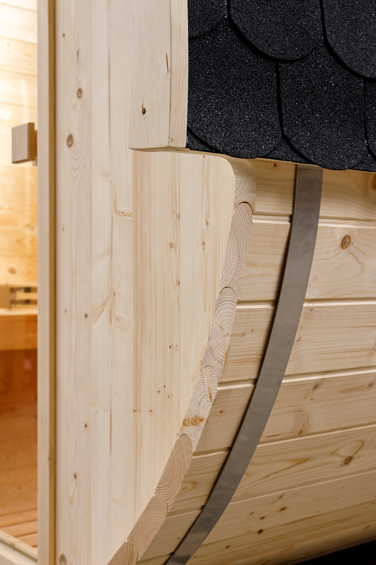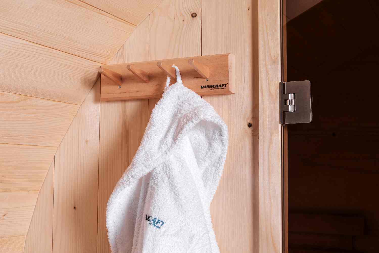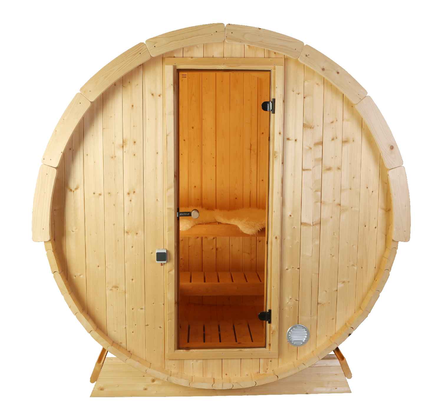 Een ruime barrelsauna met glazen deuren en een volledige achterbank met een totale lengte van 160 cm. De sauna is geschikt voor 3 tot maximaal 4 personen. Het is gemaakt van hoogwaardig sparrenhout.